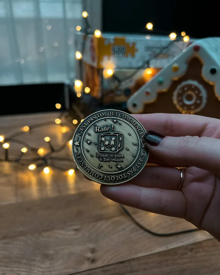 Gravée des deux côtés, cette médaille façon Pile ou Face apporte une touche d’originalité et fait un cadeau amusant pour tout passionné de jeux 🎲✨